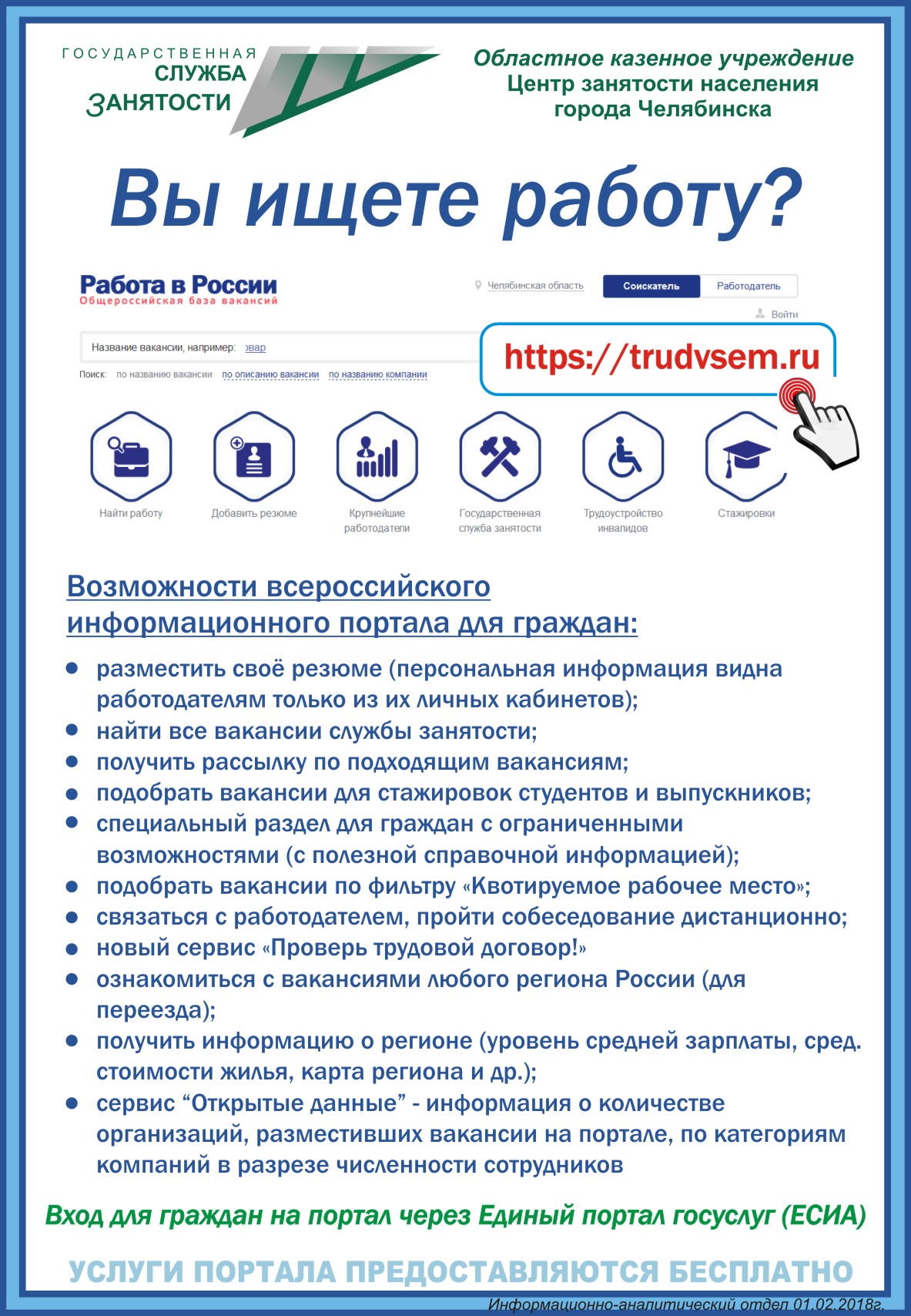 4. Количество вакансий, которыми располагает служба занятости, - 10531 ед. (на 31.12.2018 – 9516 ед.), по Челябинской области – 23926 ед.